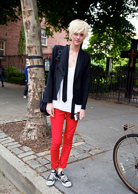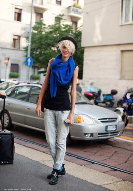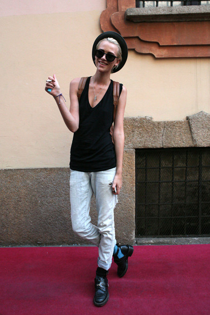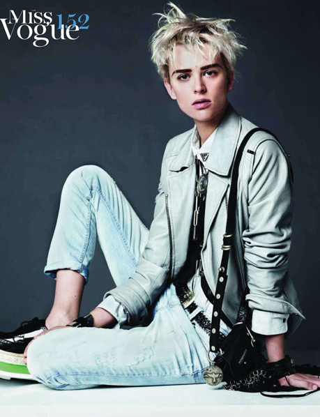 | Nhiều người nhận thấy ở siêu mẫu 24 tuổi này vẻ gì đó hao hao giống Agyness Deyn nhờ mái tóc tém bạch kim, tuy nhiên, xét về độ manly thì Milou vẫn vượt xa. |