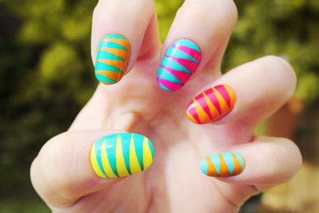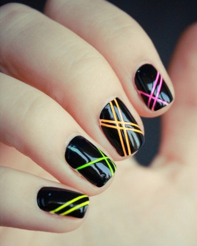 Khi vẽ nail bằng màu neon, bạn nên tránh những họa tiết cầu kỷ, rườm rà để không bị rối mắt. Xu hướng vẽ mỗi móng một kiểu họa tiết có từ mùa xuân năm ngoái nhưng vẫn được các chuyên gia dự đoán "gây bão" vào hè này. Chúng tôi sẽ hướng dẫn bạn cách thực hiện một mẫu nail theo phong cách này qua 4 bước dưới đây: