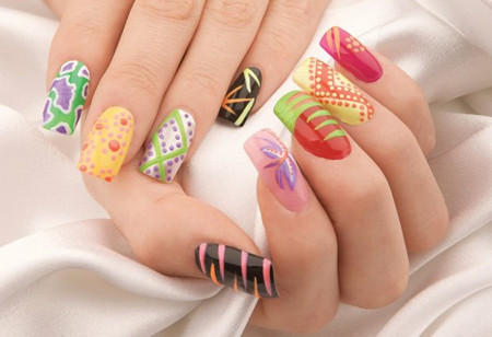Nếu không phải là người "thạo" các kỹ thuật tô vẽ, hãy sơn mỗi móng một màu hoặc thực hiện họa tiết đơn giản như đoạn thẳng, chấm bi. Tuy nhiên, bạn cần nắm được nguyên tắc kết hợp màu để có được hiệu quả tinh tế.