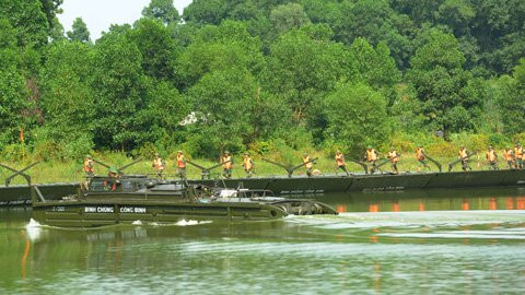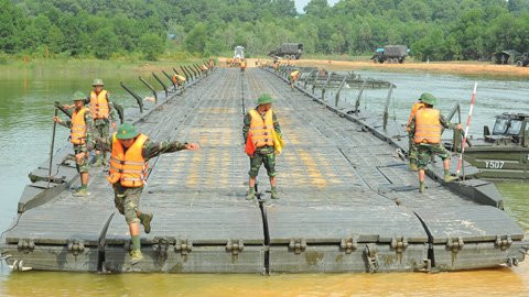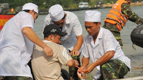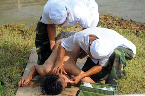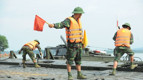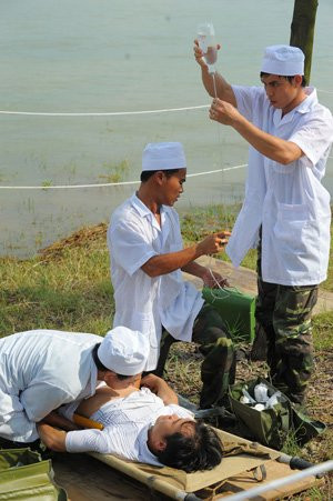 | Hoạt động nằm trong khuôn khổ hội nghị lần thứ hai Nhóm chuyên gia ADMM+ (Hội nghị Bộ trưởng Quốc phòng các nước ASEAN mở rộng) về hỗ trợ nhân đạo và cứu trợ thảm họa do Việt Nam và Trung Quốc đồng chủ trì. Trong ảnh: Phát hiệu lệnh diễn tập chính thức. |