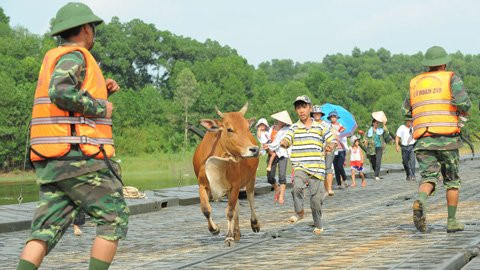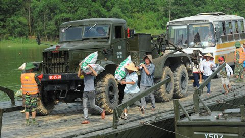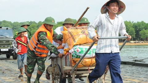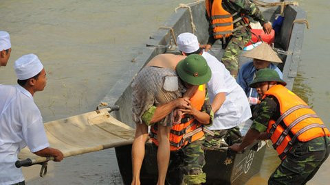 | Địa điểm cứu nạn có hàng trăm nhà bị đổ, tốc mái, ngập lụt và bị cô lập hoàn toàn, người dân phải bám vào cành cây, nóc nhà, bị đói rét. 2.000 người cần sơ tán và hỗ trợ tại chỗ. Trong ảnh: Các lực lượng sẵn sàng. |