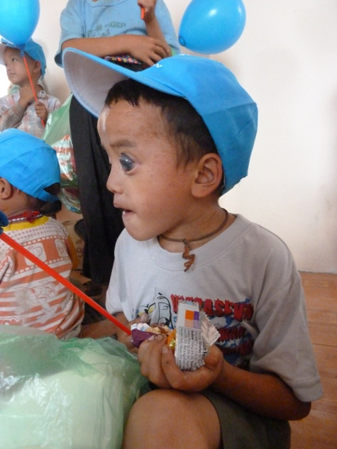 Tình cờ trong chuyến đi từ thiện thăm, tặng quà và khánh thành 4 điểm trường lẻ Đá Đỏ, Dằn A, Suối Pa và Suối Kếnh do Báo Giáo dục Việt Nam phối hợp cùng những tấm lòng hảo tâm Việt Kiều Mỹ tại xã vùng cao Kim Bon, huyện Phù Yên, Sơn La, chúng tôi biết đến trường hợp đáng thương của cháu bé Giàng A Trống Khua (6 tuổi) mồ côi cha mẹ, không ai chăm sóc. Mắt trái của cậu lồi to ra, xuất hiện những dị tật to ở trong mắt. Vì điều kiện gia đình khó khăn, cậu không thể đến trường học chữ như bao bạn bè trang lứa khác.