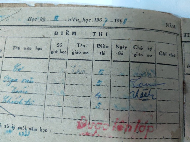 Trong số các học viên lớp chuyên này, có một người bảng điểm các học kỳ phần lớn là điểm 4, 5, duy nhất một điểm 3 – thời đó điểm chấm cao nhất là 5, tương đương điểm 10 ngày nay, điểm 4 tương đương 8 hoặc 9.