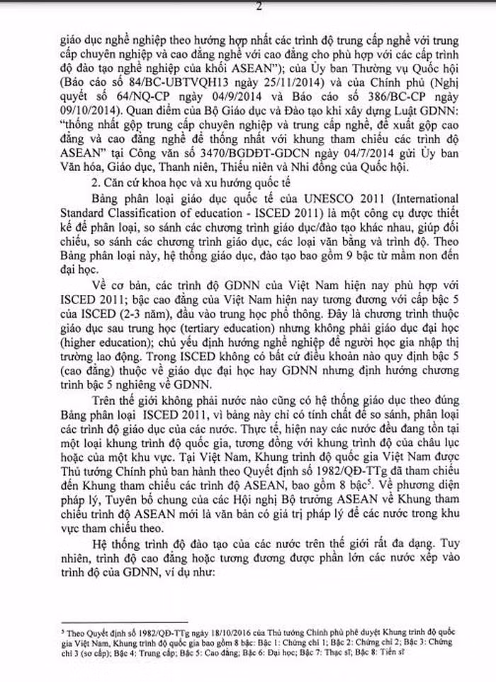 Thứ hai, nhìn vào công văn trả lời của Bộ Lao động, Thương binh và Xã hội gửi Bộ Nội vụ về những nội dung mà Hiệp hội Các trường đại học, cao đẳng Việt Nam nêu ra cho thấy Bộ Lao động, Thương binh và Xã hội giải thích: “Bậc cao đẳng của Việt Nam hiện nay có chương trình thuộc giáo dục sau trung học, nhưng không phải giáo dục đại học” và gán cho đây là cấp độ 5.