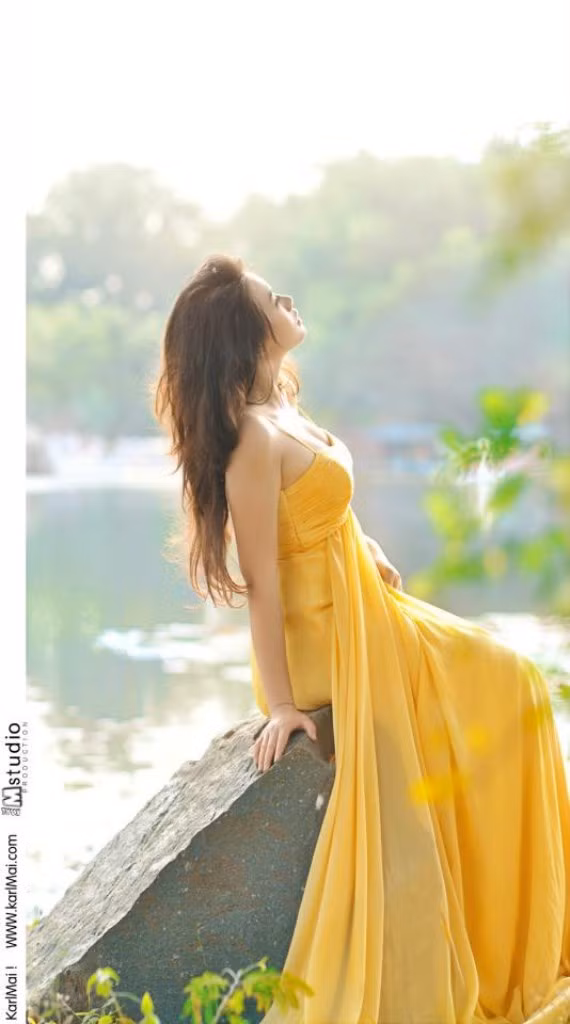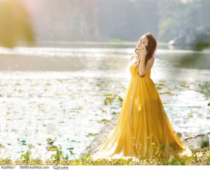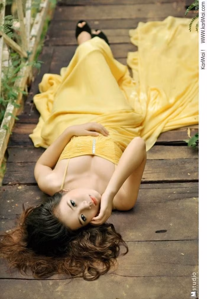 | Nàng kiều diễm, gợi cảm với đầm vàng, tôn những đường cong gợi cảm. |