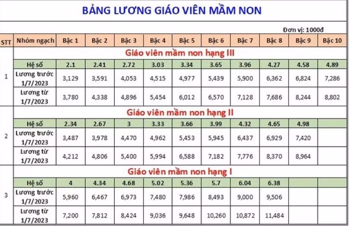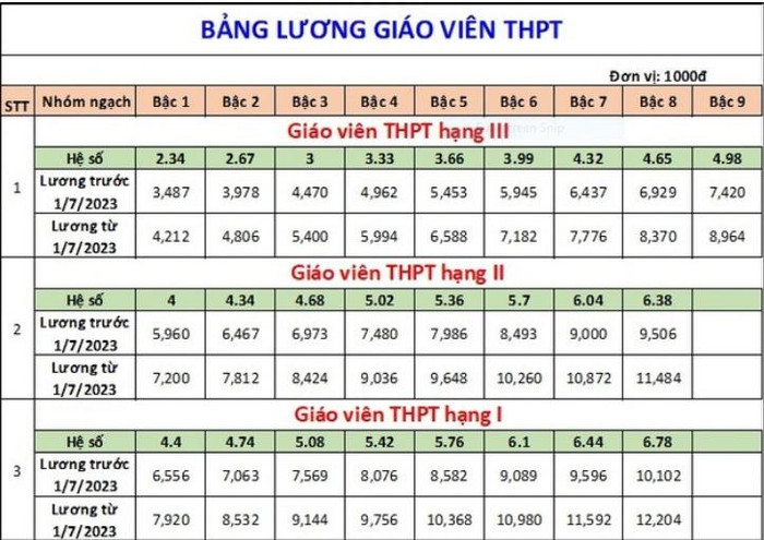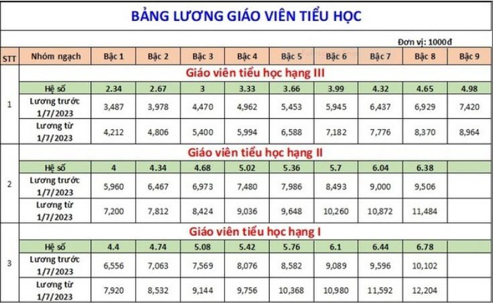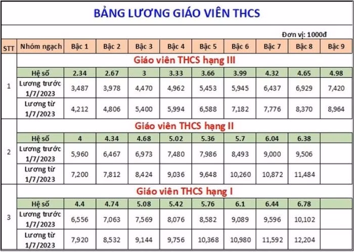Hiện nay lương của giáo viên được tính theo công thức: Tiền lương = Hệ số lương x Lương cơ sở
