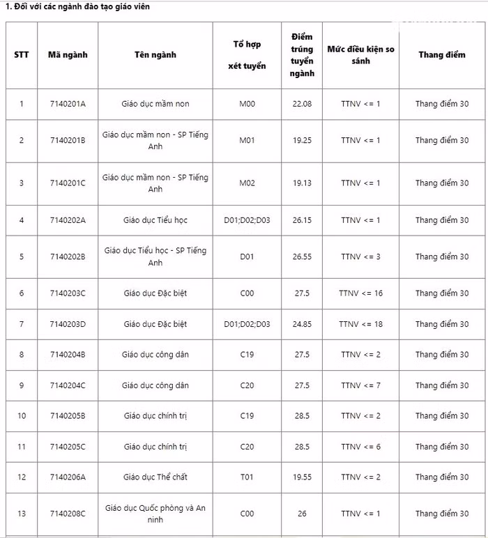 | Điểm chuẩn năm 2022 của Trường Đại học Sư phạm Hà Nội đối với khối ngành đào tạo giáo viên |