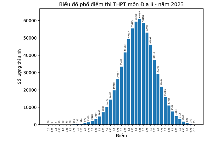 Phổ điểm thi tốt nghiệp môn Địa lý:
