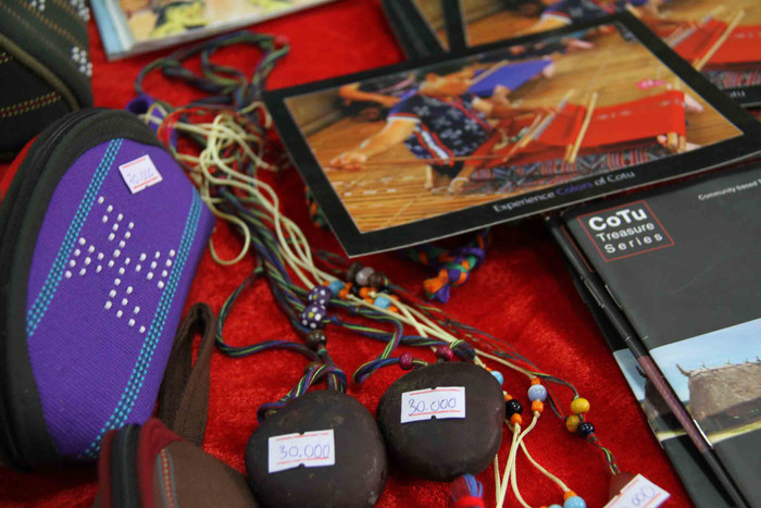 | Giới trẻ Đà Nẵng háo hức khi thấy nhiều sản phẩm văn hoá của đồng bào Cơ Tu tại buổi giới thiệu. |
