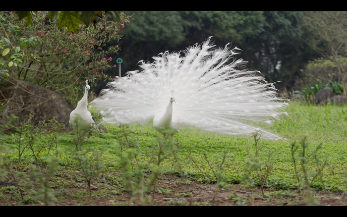 Ấn tượng nhất trong đàn công là những chú công công trắng muốt, đây là những cá thể công đặc biệt rất hiếm gặp trong tự nhiên. Trong tự nhiên bình quân cứ 100 cá thể chim công được sinh ra có từ 1 - 3 công trắng.