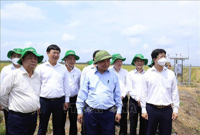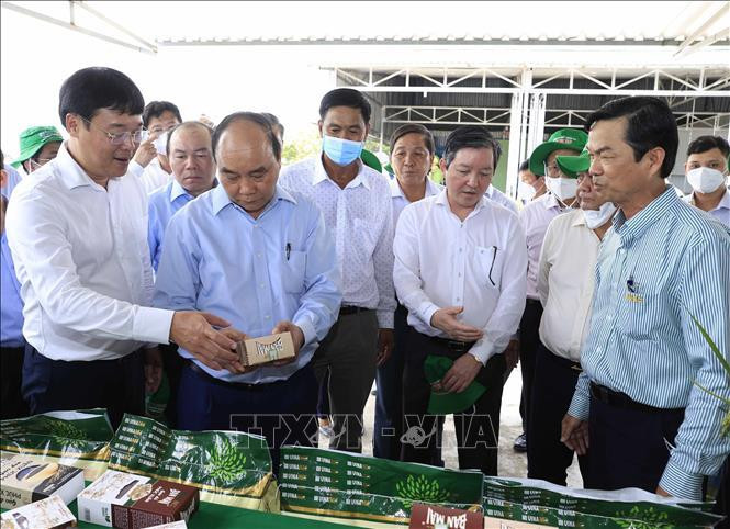 | Chủ tịch nước Nguyễn Xuân Phúc thăm mô hình Hợp tác xã dịch vụ Mỹ Đông II, huyện Tháp Mười. Ảnh: Thống Nhất/TTXVN |