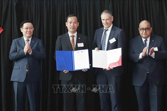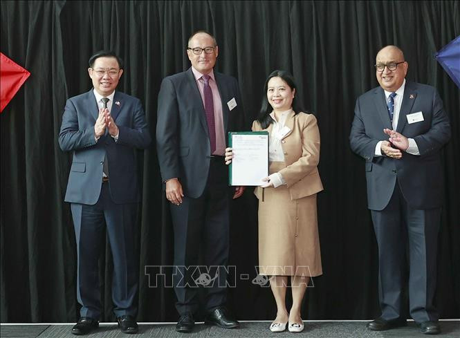| Chủ tịch Quốc hội Vương Đình Huệ chứng kiến lễ trao đổi Biên bản ghi nhớ giữa các trường đại học của New Zealand và Việt Nam. |