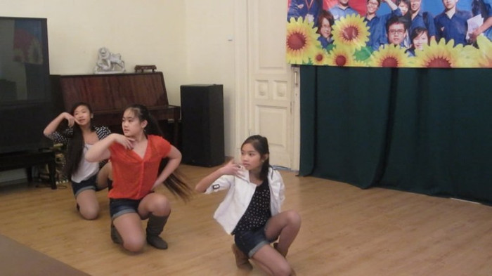| Sôi động với tiết mục nhảy “Vụ trộm ngân hàng ở Moscow” của các nữ sinh viện tiếng Nga A.C.Pushkin |
