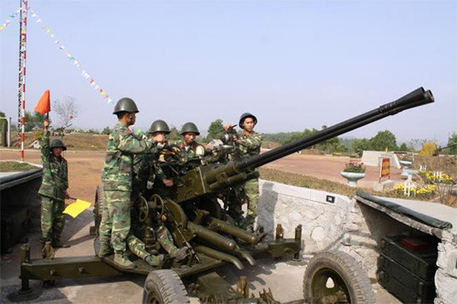 | Khẩu đội pháo phòng không 1 cơ động vào vị trí SSCĐ. |
