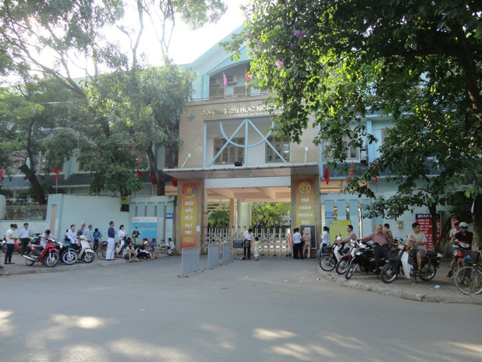 | 4h00 tại cổng Trường tiểu học Nghĩa Tân đã có hàng loạt phụ huynh xếp xe đợi con. |