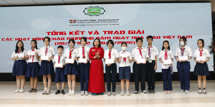 | Hiệu trưởng Ngô Thị Diệp Lan trao giải cho các tiết mục văn nghệ của thầy và trò nhà trường. |
