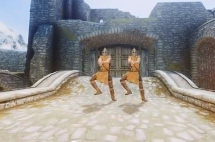Thế giới game sôi động mang tên Skyrim mới đây cũng đã cho những chiến binh của mình "ngừng chiến đấu" để nhảy điệu Gangnam Style quen thuộc.
