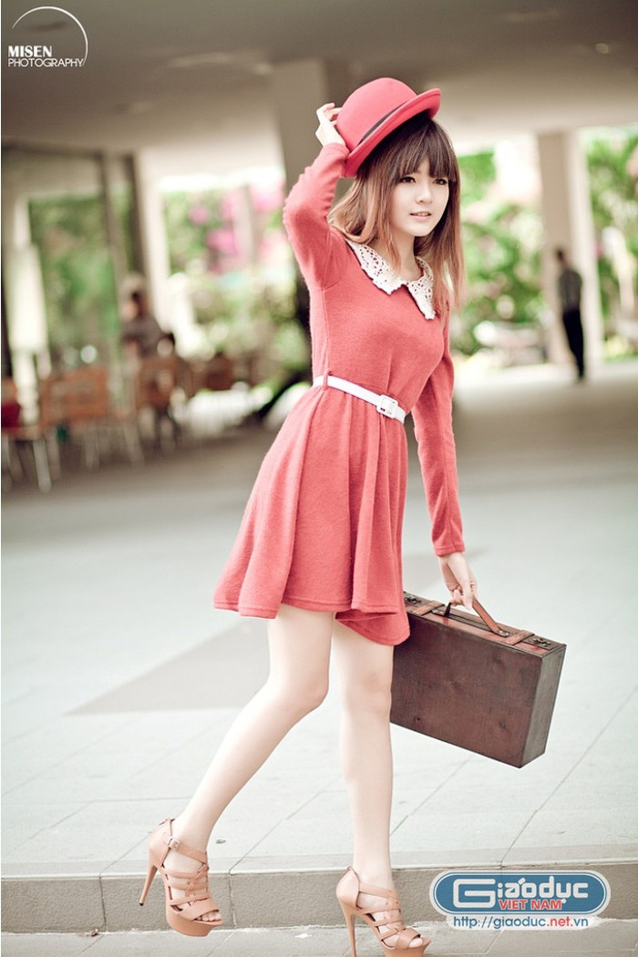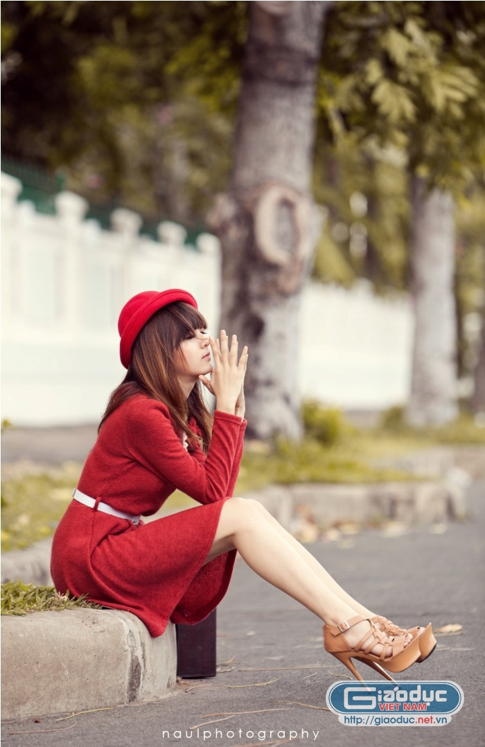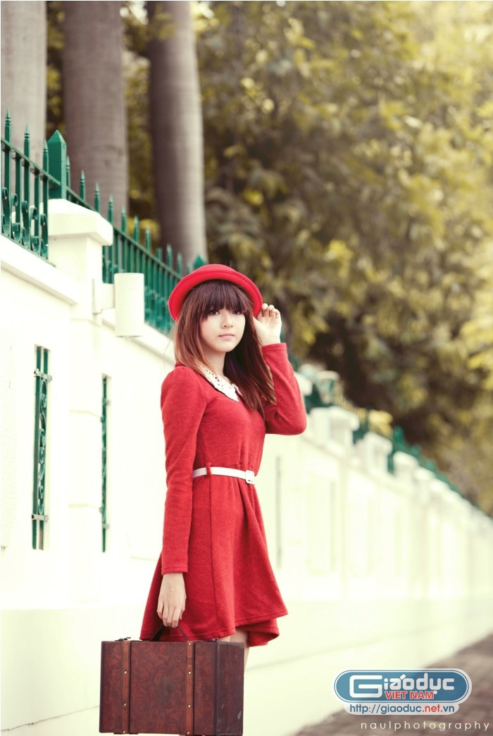 | Diện váy đỏ, make up nhẹ nhàng là Lily có thể tự tin dạo phố vào một ngày đẹp trời |