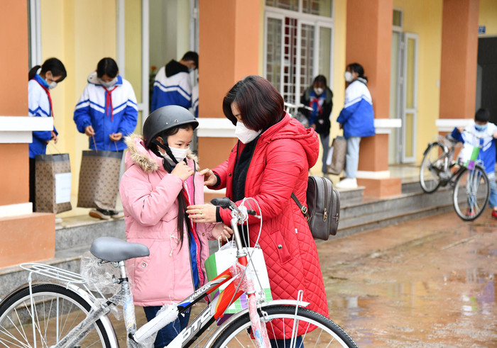 Theo cô Khánh, dự định ban đầu của Công đoàn là tặng 30 xe đạp cho 30 em học sinh Trung học cơ sở. Nhưng con số này đã lên tới 62 xe đạp, 62 mũ bảo hiểm và 62 bộ áo mưa và nhiều xuất quà khác. Chúng tôi nhận thấy, tình cảm của các thầy cô, cán bộ giành cho các em học sinh là rất lớn. Hy vọng, các em luôn vui vẻ, tiếp tục nỗ lực và học tập thật tốt.”