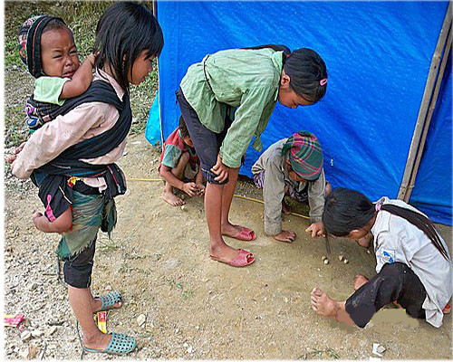 Cuộc sống còn khó khăn thiếu thốn, các em chắc hẳn chưa từng được chơi những trò chơi như bạn bè đồng trang lứa ở những nơi khác. Có em còn ngơ ngác với máy ảnh đang hướng về phía mình. Các em cũng được đi học, song cơ sở vật chất còn thiếu lắm, giáo viên cũng ít. Có nhiều em phải bỏ học ở nhà địu em hay phụ giúp cha mẹ, đôi vai em bé nhỏ mà trĩu nặng mưu sinh.