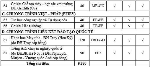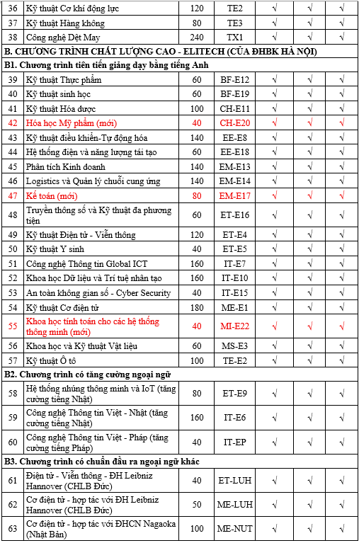 Trong đó, có 38 chương trình chuẩn; 26 chương trình chất lượng cao (Elitech); 2 chương trình Việt - Pháp (PFIEV) và 2 chương trình liên kết đào tạo quốc tế.