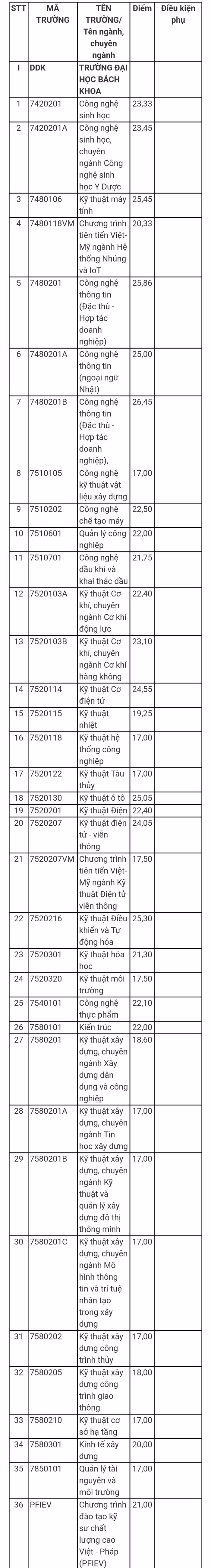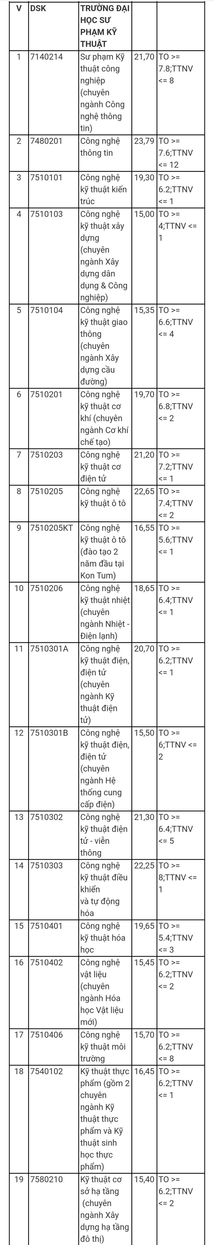 Điểm chuẩn của Trường Đại học Sư phạm Kỹ thuật như sau: