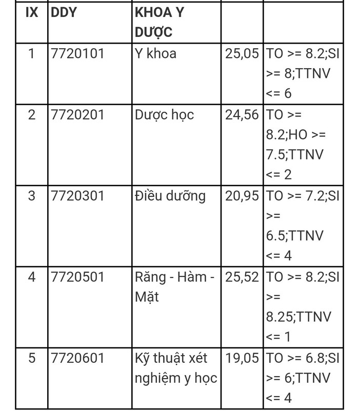Điểm chuẩn của Khoa Y dược: