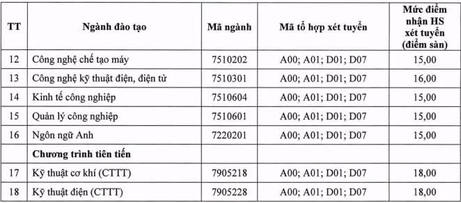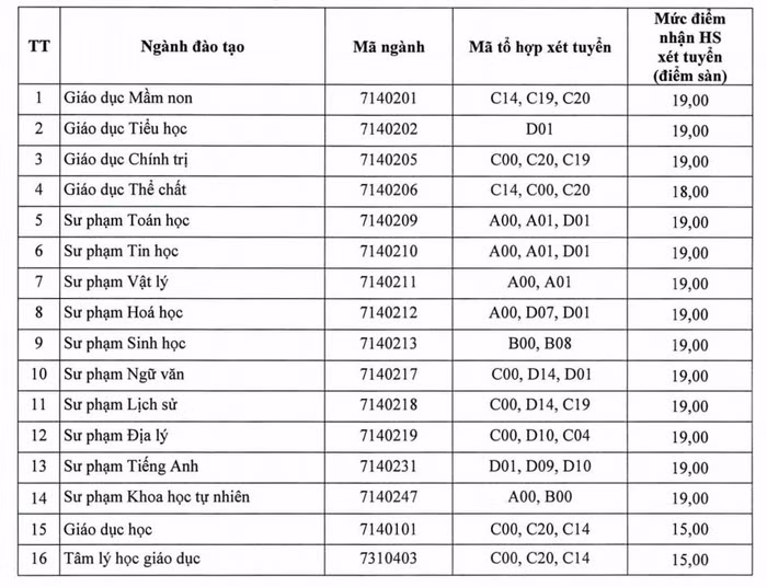Điểm sàn của Trường Đại học Sư phạm, Trường Đại học Ngoại ngữ, Trường Đại học Kỹ thuật công nghiệp đều dao động từ 15 đến 19 điểm, 13 ngành đào tạo giáo viên của Trường Đại học Sư phạm có mức điểm sàn từ 19 điểm.