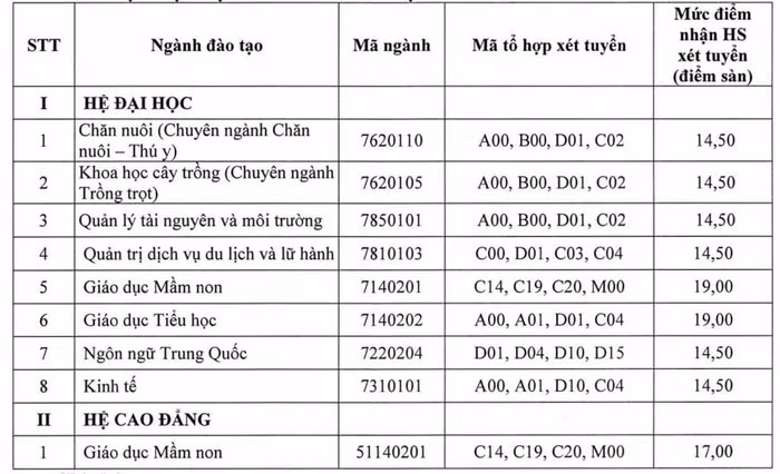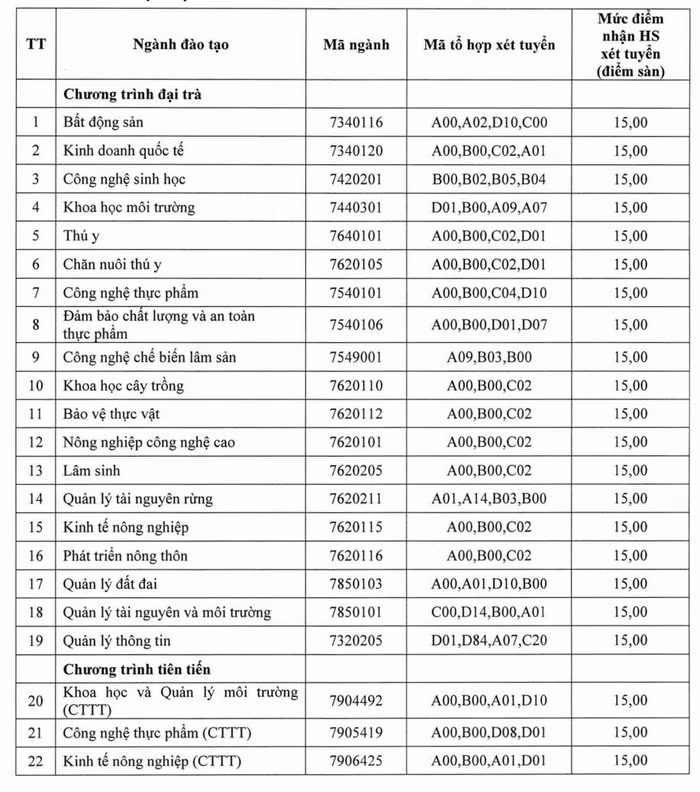 22 ngành của Trường Đại học Nông Lâm đều có điểm sàn từ 15 điểm.