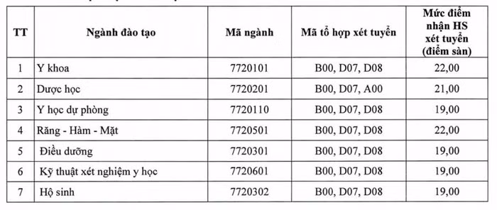 Trong đó, Trường Đại học Y Dược có mức điểm sàn cao nhất, dao động từ 19 đến 22 điểm. Hai ngành có điểm sàn cao nhất là ngành Y khoa và ngành Răng - Hàm - Mặt.