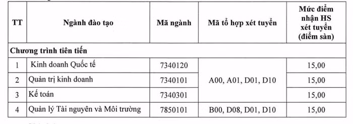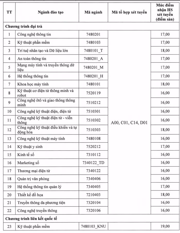 Điểm sàn từng trường và từng ngành cụ thể như sau:
