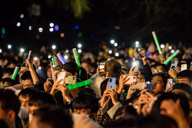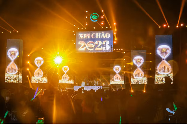 Trước khoảnh khắc giao thừa, dàn nghệ sĩ trên sân khấu cùng cả biển người cùng đồng thanh đếm ngược chào đón năm mới.