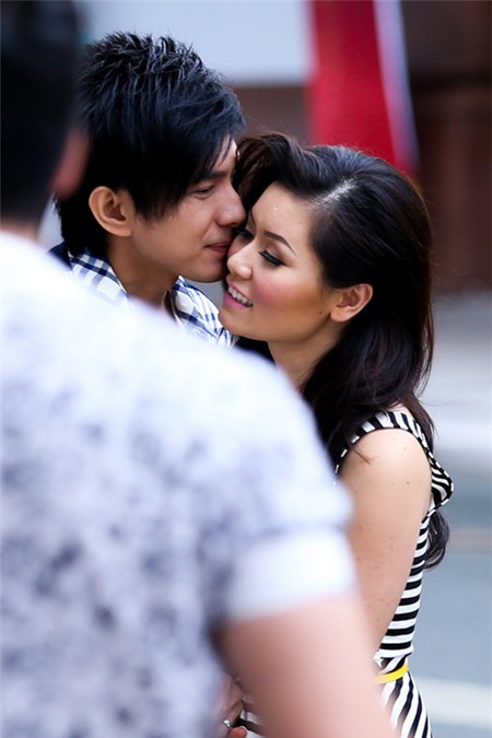 | Đan Trường liên tục dành cho vợ những cử chỉ tình tứ như hôn nhẹ lên má hoặc tóc trong lúc cùng đi mua sắm. Thủy Tiên cũng rất dịu dàng nép mình trong vòng tay ông xã. Nữ doanh nhân Việt kiều từng thẳng thắn chia sẻ hy vọng các fan của chồng sẽ đón nhận mình với tư cách một người chị, một người bạn mới. |