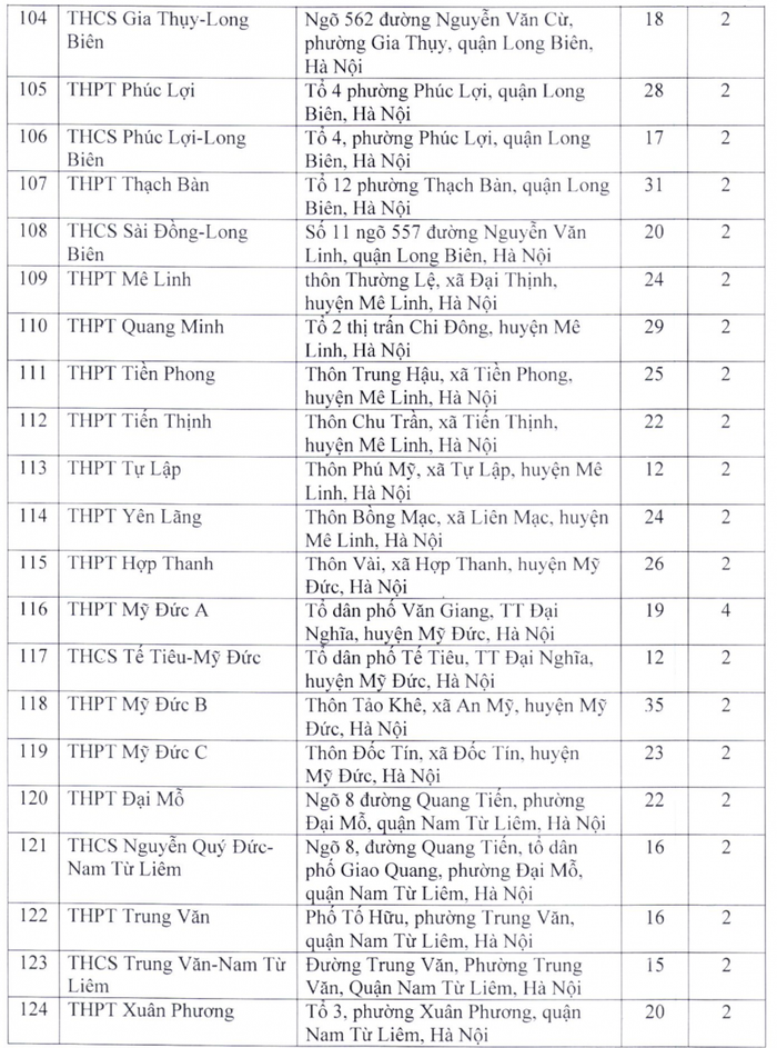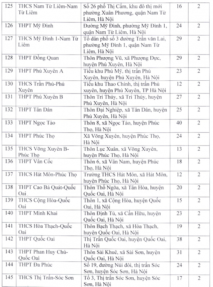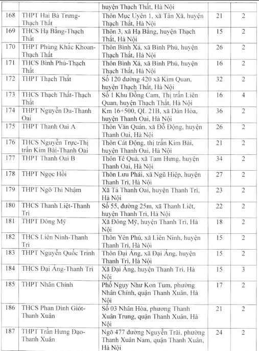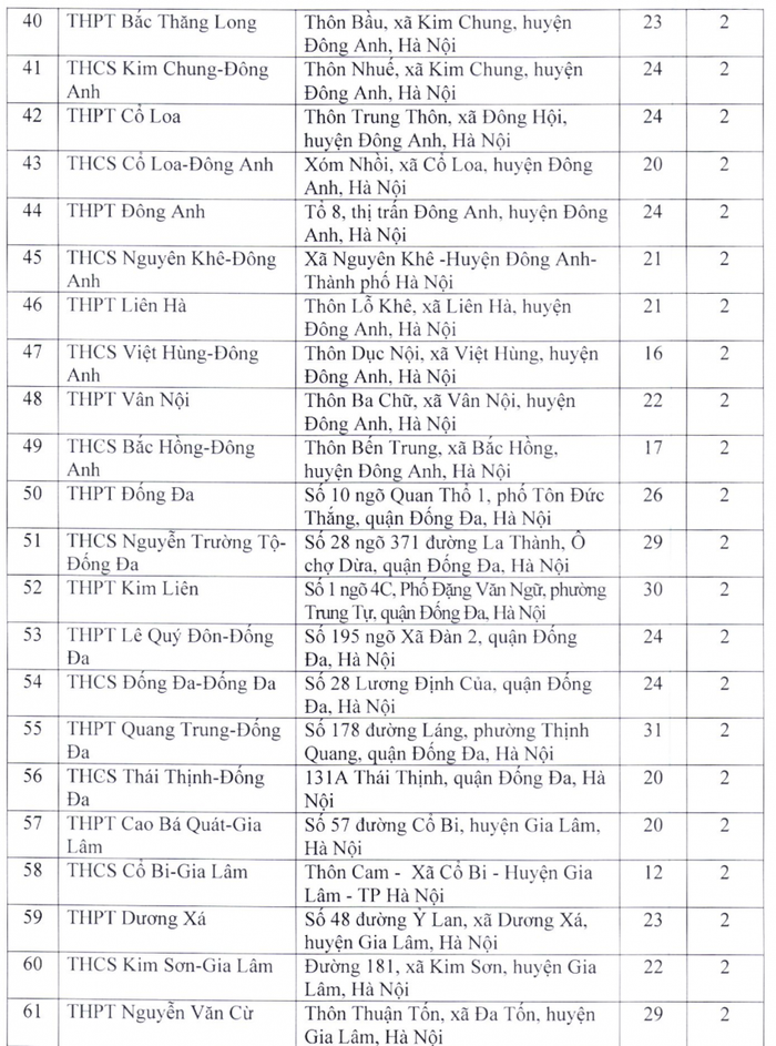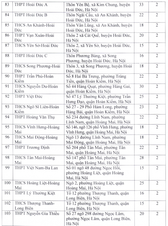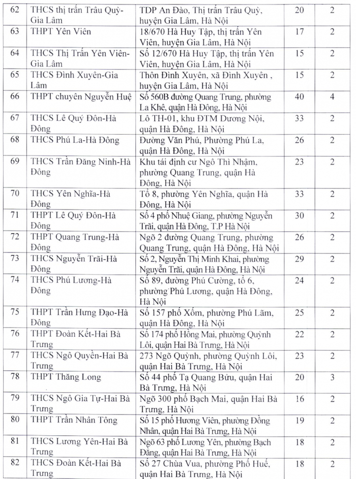 Theo đó, điểm thi có nhiều phòng thi nhất là Trường trung học phổ thông chuyên Hà Nội - Amsterdam với 48 phòng; tiếp đến là Trường trung học phổ thông chuyên Nguyễn Huệ (40 phòng), Trường trung học phổ thông Ngọc Tảo (40 phòng), Trường trung học phổ thông Chu Văn An (39 phòng), Trường trung học phổ thông Quốc Oai (38 phòng), Trường trung học phổ thông Nguyễn Du - Thanh Oai (36 phòng)...