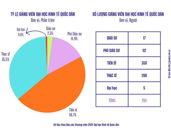Về đội ngũ giảng viên, theo Báo cáo thường niên năm 2024, nhà trường có khoảng 750 giảng viên toàn thời gian. Trong đó, có 112 giảng viên chức danh giáo sư, 17 giảng viên chức danh phó giáo sư; 350 giảng viên trình độ tiến sĩ, 266 giảng viên trình độ thạc sĩ và 5 giảng viên trình độ đại học.