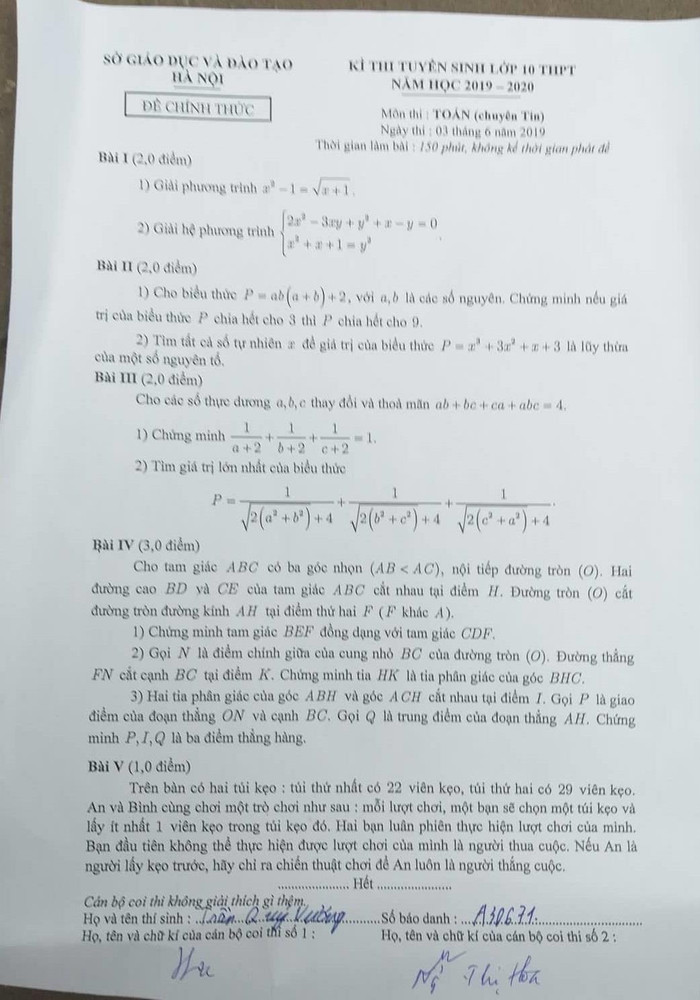 Sau đây là một số hình ảnh và đề thi Toán, Toán tin năm nay.