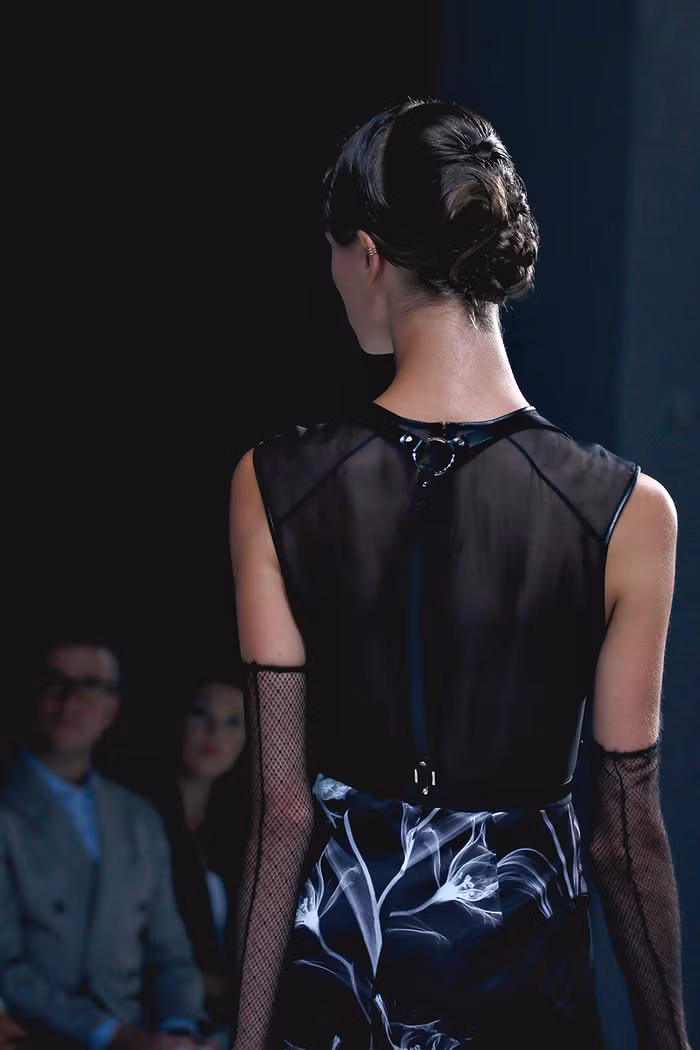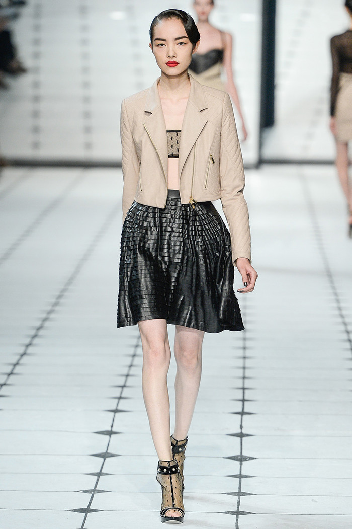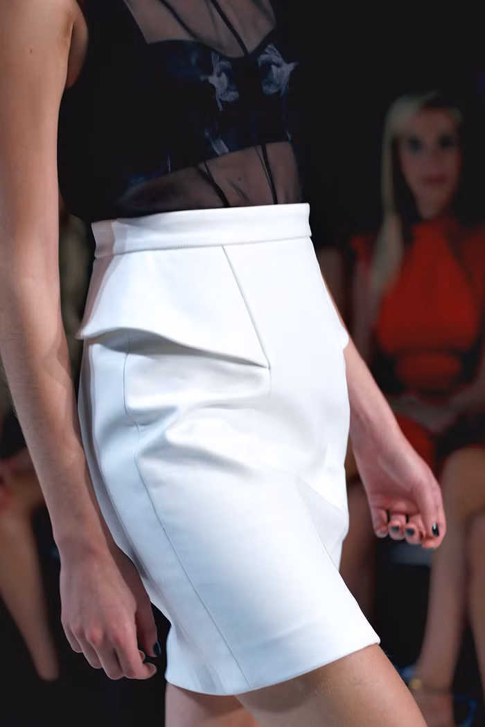 | Cận cảnh chiếc váy da nhiều tầng lạ mắt. |