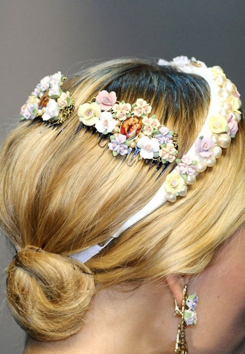 | Dolce Gabbana đã thổi bùng lên xu hướng băng-đô hoa ngọt ngào lãng mạn |