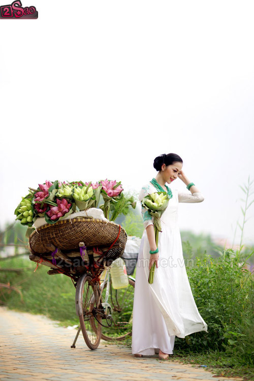 | Ngọc Diễm e lệ với áo dài hoa sen |