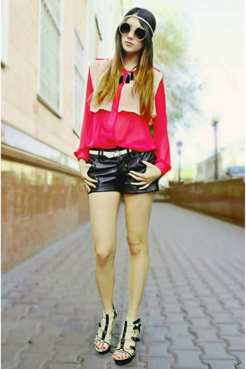 | Bạn có thể chọn phối shorts da nâu cùng những chiếc áo oversized và giày cao gót, mang tới cái nhìn thật duyên dáng và nhã nhặn cho mình. |