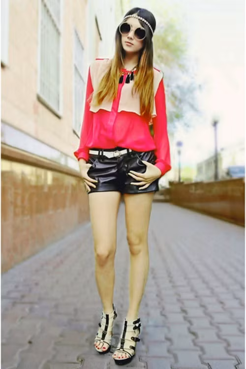 | Chất liệu ren của áo sẽ làm cho chiếc quần shorts da trở nên mềm mại và nữ tính hơn. |