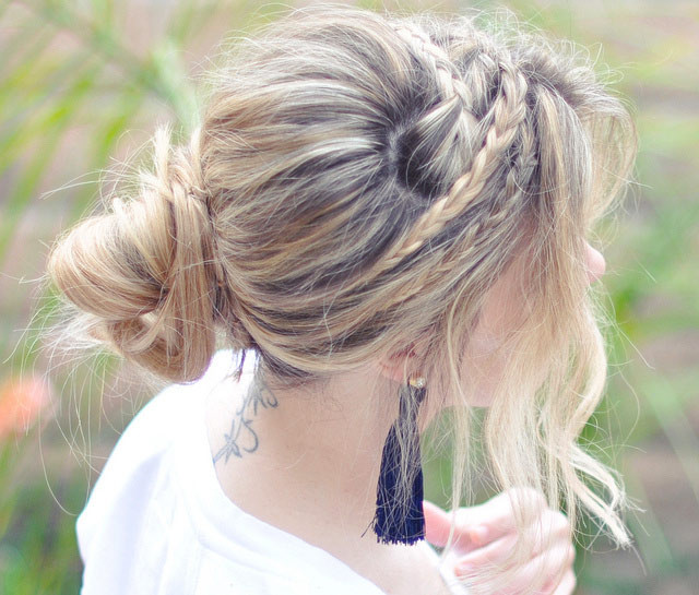| Tóc tết sam và búi phần đuôi tóc đem đến vẻ đẹp mặn mà quý phái. Với cách tết này vừa tạo được vẻ tự nhiên và làm mới kiểu tóc của bạn. |