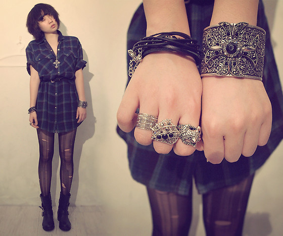 | Biến đổi một chút trong chi tiết áo, thay vì mặc áo nạm đinh hầm hố, cô bạn này đã chuyển sự chú ý xuống túi xách cầm tay nạm đinh, cùng áo khoác da để phù hợp hơn với thời trang đời thường. |