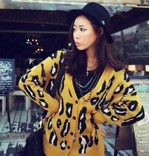 | Hàn Quốc là nước hàn đới, do vậy nhiệt độ vào mùa thu cũng tương đối lạnh. Các bạn trẻ ở đây đã khéo léo kết hợp áo khoác len họa tiết da báo để giữ ấm mà vẫn có được vẻ ngoài rất sành điệu như thần tượng. |