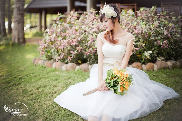 | Những chiếc đầm ngắn xinh xắn dành cho cô dâu dễ thương, trẻ trung. Là một trong những hot girl tuổi teen đình đám hiện nay, cô bạn có nick name Huong Angella trông cũng tuyệt xinh trong chiếc váy ngắn xòe rộng. |