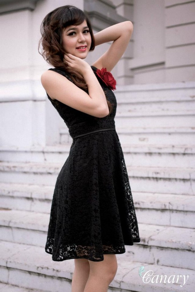 | Chiếc váy đen huyền bí càng tôn lên nước da trắng mịn và đôi chân ngọc ngà. |