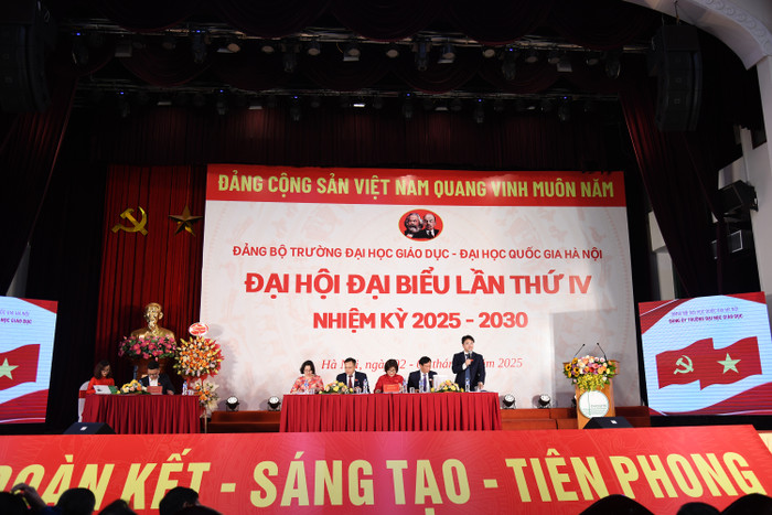 Đại hội đại biểu Đảng bộ Trường Đại học Giáo dục – ĐHQGHN lần thứ IV, nhiệm kỳ 2025-2030 đã diễn ra thành công tốt đẹp trong niềm hân hoan và phấn khởi của toàn bộ đảng viên. Thành công của Đại hội là tiền đề vững chắc, tạo nền móng, tạo đà phát triển cho Đảng bộ Trường Đại học Giáo dục nói riêng và sự phát triển của Trường Đại học Giáo dục nói chung.