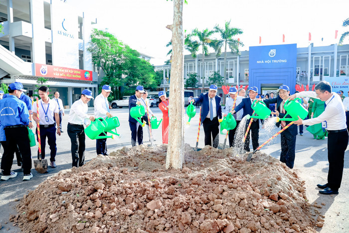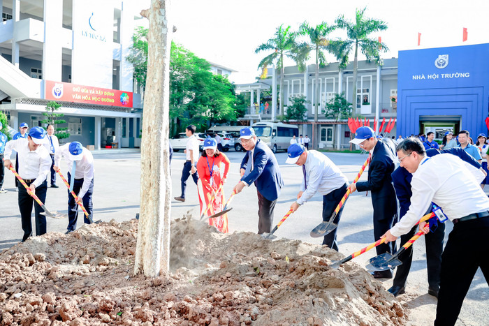 Các đại biểu trồng cây lưu niệm và thăm quan cơ sở vật chất của Nhà trường tại cơ sở 353 Trần Hưng Đạo – TP Nam Định.