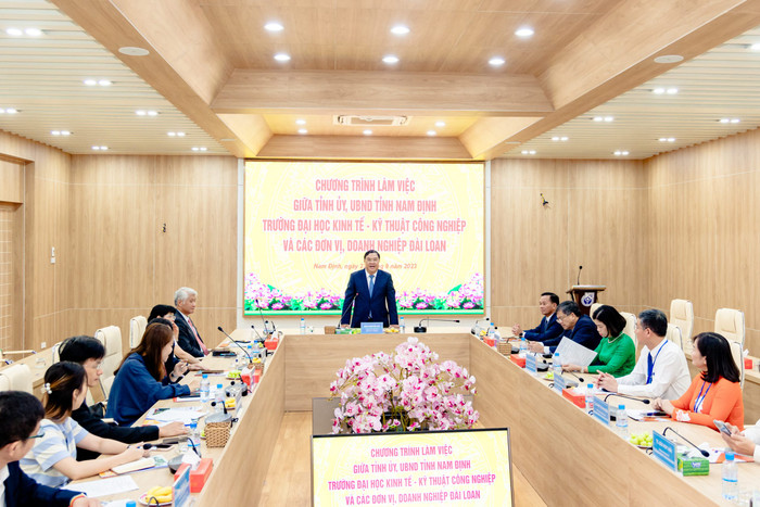 Trước đó, Bí thư Tỉnh ủy Phạm Gia Túc đã có buổi làm việc với Ban Giám hiệu Trường Đại học Kinh tế – Kỹ thuật Công nghiệp và các đơn vị, doanh nghiệp Đài Loan và trồng cây lưu niệm tại khuôn viên nhà trường.