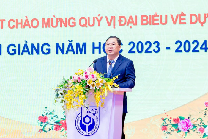 Trong bài diễn văn khai giảng năm học mới, TS Trần Hoàng Long – Phó Bí thư Đảng ủy, Hiệu trưởng Nhà trường nhiệt liệt chào mừng các vị đại biểu, các thầy cô giáo, cán bộ viên chức, người lao động và các em sinh viên tham dự Lễ khai giảng năm học mới 2023-2024. Chúc mừng 5.662 tân sinh viên đại học niên khóa 2023-2027 đã vượt qua quá trình học tập trung học phổ thông để chính thức trở thành thành viên trong gia đình Uneti.